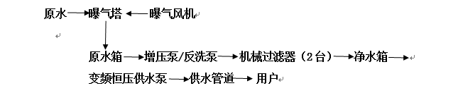 前处理制水产量大于15T/H,主要工作包括原世一堂厂区101车间原曝气塔拆除(含缓冲水箱拆除,曝气塔风机拆除)拆曝气塔及中间水箱(含风机)。新增曝气塔及中间水箱, 中间水箱自水处理罐二台离心水泵购买及安装。(扬程24米,流量15T/H)。拆除二台锰砂罐及活性炭罐。安装二台锰砂罐及活性炭罐各一台(串联处理,产水量大于15T/H,固定床)。.新增终端不锈钢水箱1个。水箱至105.104车间新增离心供水泵二台(流量大于15T,扬程大于32米)。现场塑料扣板吊棚拆除安装,地面瓷砖拆除安装,管线拆除安装,水处理门的拆拆安装处理。