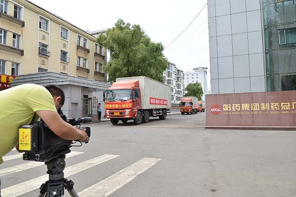 经过MG电子免费试玩集团品牌管理组与MG电子免费试玩总厂的厂办公室和宣传部等相关部门多方筹集和准备,2016年8月9日向河南地区爱心捐赠药品公益活动开始启动,选择MG电子免费试玩集团制药总厂的规模最大的药品储备立体库作为捐赠药品发车现场,捐赠发货现场整齐的停放着十辆大型专业药品运输车,每辆车正面挂着醒目的条幅“MG电子免费试玩集团爱心捐药车”,两侧挂着醒目的红色条幅,MG电子免费试玩集团营销有限公司党委副书记李英杰与MG电子免费试玩总厂党委副书记郑铁钢出席捐药发货现场并讲话,并与MG电子免费试玩总厂的员工们一起把药品一箱一箱的装上车。