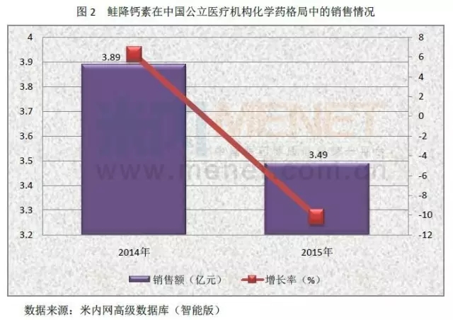 由米内数据可知,近两年鲑降钙素在中国城市公立医院、县级公立医院、城市社区和乡镇卫生院四个化学药格局中合计销售额均超过3亿元。我国有2100万骨质疏松病人,只有140多万获得了治疗用药,市场空间广阔。