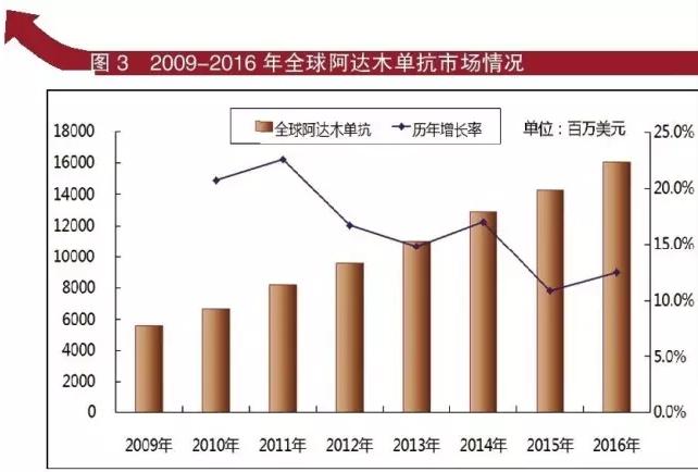 Humira是艾伯维的超级重磅产品,连续五年稳坐全球“药王”宝座,该药2015年销售额已超过140亿美元,随着该产品临床适应症稳步拓宽,2016年再创佳绩,销售额突破160亿美元大关。近期,虽然面临专利悬崖临近以及阿达木单抗类似物即将上市的考验,但上述因素整体对Humira的销售影响有限。