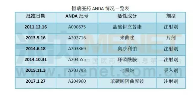 苯磺顺阿曲库铵注射液ANDA是继伊立替康、来曲唑、奥沙利铂、环磷酰胺、七氟烷之后的又一ANDA,也是公司2017年的首个ANDA。据恒瑞医药2016年半年报显示,2016上半年,公司向美国FDA递交了5个ANDA申请,2017年有望成为恒瑞ANDA爆发年。