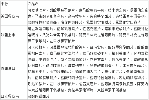 值得注意的是,CFDA发布的仿制药参比制剂目录都包括产品较为权威的注册地来源。不知这是否意味着国内仿制药生产厂家需要根据来源所在国选择购买参比制剂?如若属实,则意味着表1的34个品种53品规可以选择国内进口产品做参比制剂。