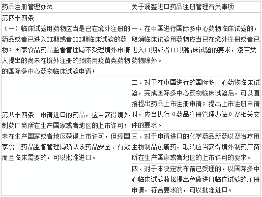 CFDA以往要求进口药物制造企业中国针对所有药品产品的进口流程均要求同时提交上市许可证明与进口注册申请,确认该药品获准在该国上市并销售之后,才能申请中国的临床试验授权。这将极大延迟新药进入中国上市的时间,也使得中国的患者无法使用全球市场最具创新性的药物。相比之下,在其他国家,原产国临床试验可与申请国临床试验同时进行。