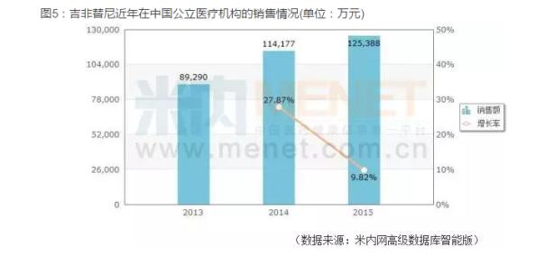 据米内网高级数据库显示,在用于治疗肺癌的小分子靶向抗肿瘤药物中,由阿斯利康生产的吉非替尼年近年来销售额、市场占有率均排在首位,2015年在中国公立医疗机构的销售额达到12.53亿元。
