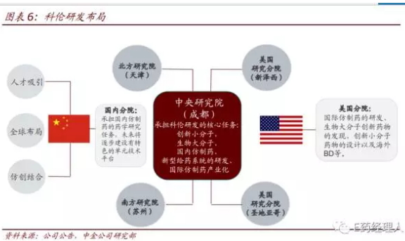 从布局上来看,涉及国内仿制药、国际仿制药、创新小分子药物、生物技术药等方面。在国内仿制药方面有48个药物获批临床或BE;国际仿制方面已经立项无菌注射剂近10项,2项已经进入CMO生产转移阶段;创新小分子方面的,在2016年下半年,其自主研发的抗肿瘤药物KL070002已经申报临床;生物技术领域抗EGFR单抗注射液进入临床,治疗胃癌的重组抗VEGFR2全人源单克隆抗体注射液实现国内首家申报临床。