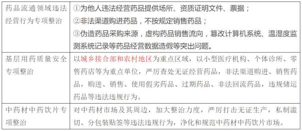 药品流通领域违法经营行为、基层用药质量安全和中药材中药饮片3大领域。