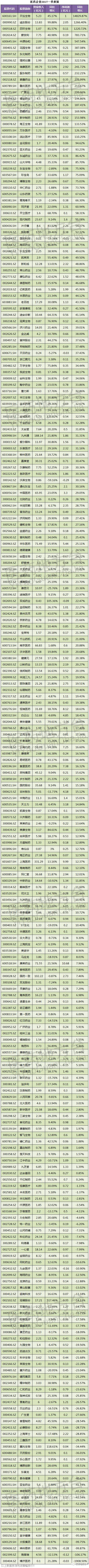 不过,2017年一季度,有9家药企是亏损的,分别是美年健康(净利润-1.06亿元)、沃森生物(-0.29亿元)、神州易桥(-0.28亿元)、九安医疗(-0.16亿元)、海普瑞(-0.12亿元)、双成药业(-0.09亿元)、博济医药(-0.03亿元)、天目药业(-0.03亿元)、国农科技(-0.01亿元)。