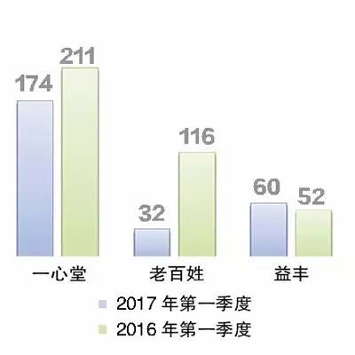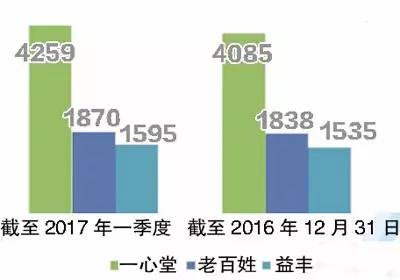 并购、做大规模、上市,各地有实力的区域连锁药店基本都是按照这个套路在走,因此,把三大上市连锁作为参照对象再合适不过。对于其他连锁来说,最关心的无非是他们在2017年第一季度又开了多少店、盈利情况如何、有什么新的规划,等等。