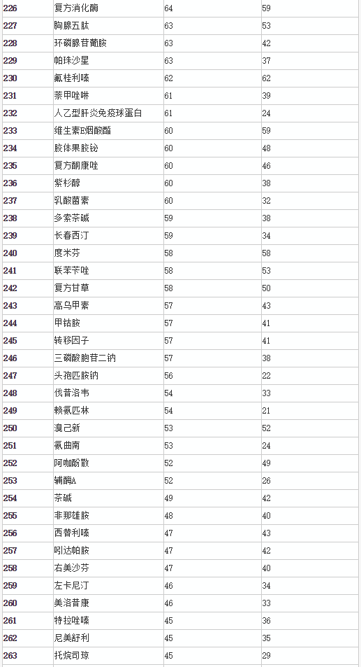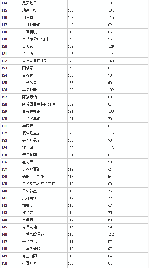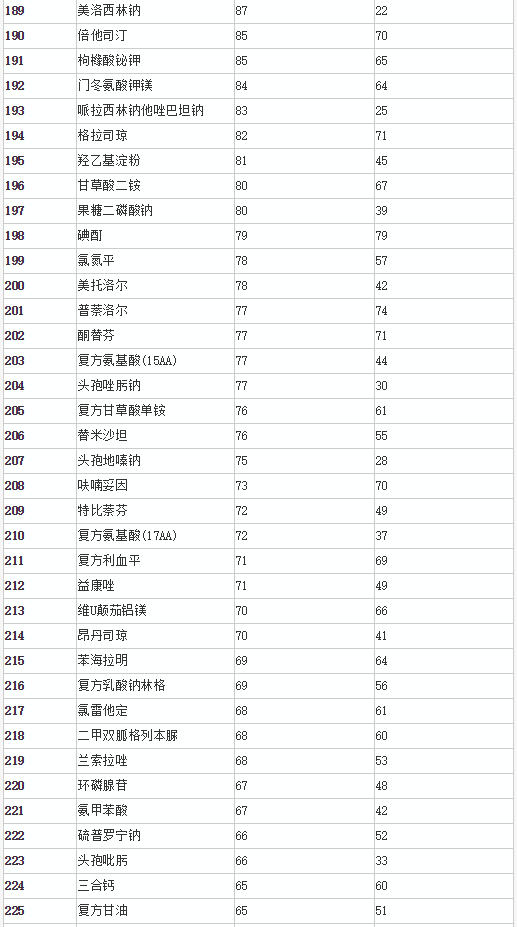 公告中,总局表示,此目录是委托中国药学会,对已获批上市药品在2013~2015年间的销售情况进行监测分析,按照符合已获批准文号企业数≥20家、且样本医院(CMEI)监测3年在销批准文号企业数≥20家的条件,或符合已获批准文号企业数≥20家、且样本药店(RDM)监测3年在销批准文号企业数≥20家的条件进行通用名品种筛选,共遴选出294个品种,涉及临床药理学和治疗学分类的13个大类、59个亚类,现予以公告。与2016年第153号公告发布的药品目录相比,新增13个品种,有1个品种从原目录中调出。
