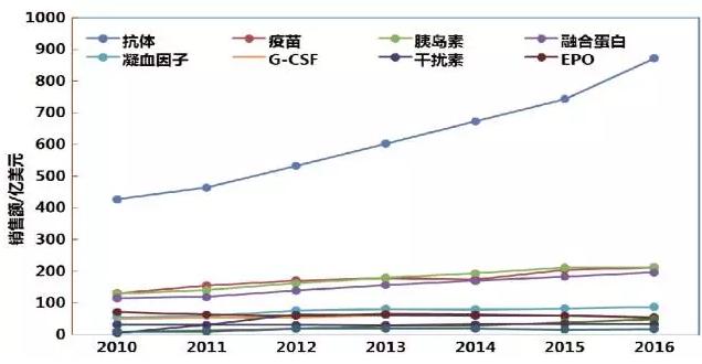 若计入Enbrel、Eylea等融合蛋白药物,2016年合计市场规模将超过1000亿美元。