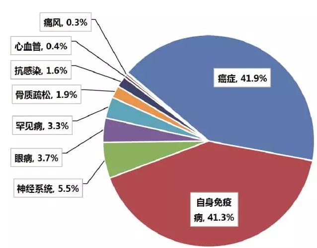 各治疗领域抗体药销售额占比:新作用机制有望改变格局