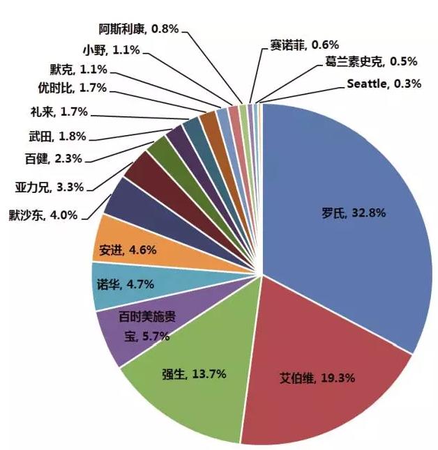 各药企抗体药市场份额对比:PD-1改写六强企业名单