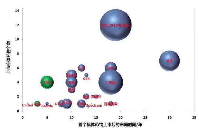 抗体药新贵中,最为典型的是百时美施贵宝。作为一家传统的小分子药物研发企业,百时美施贵宝进入抗体药领域的时间并不长,由于押对了PD-1抗体的宝,迅速成为一家抗体药巨头,与诺华、安进等比肩。