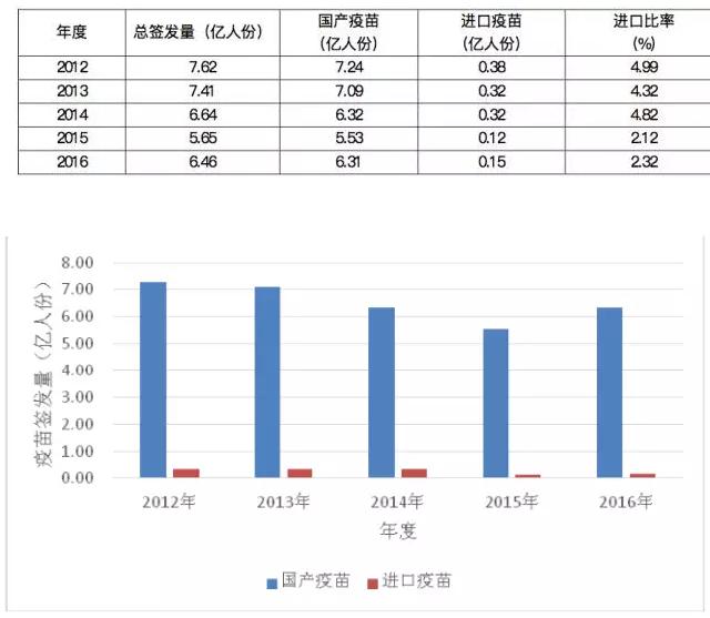 表 2 2012-2016 年签发国产和进口疫苗情况