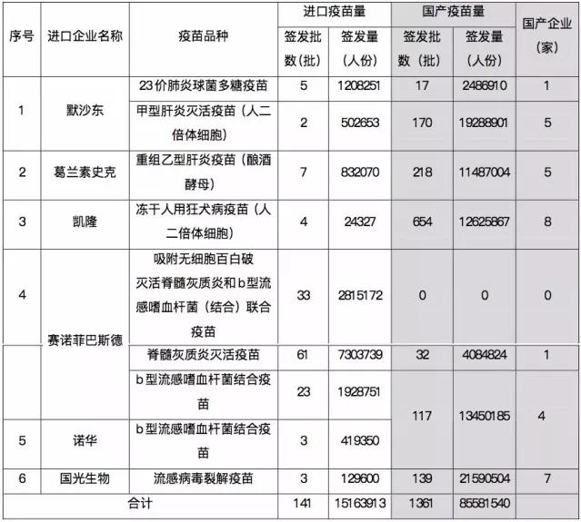 表 3 2016 年涉及进口的疫苗品种签发概况