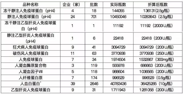 2016 年共 39 家血液制品生产企业申报批签发,包括国内企业 27 家和境外企业 12 家。 目前,共有 28 家国内血液制品企业,除新疆德源生物工程有限公司因未取得 GMP 证书而 未签发产品外,其它 27 家血液制品生产企业均有产品签发。2016 年共签发国产血液制品 2564 批,计 3878.8277 万瓶,其中,人血白蛋白 1187 批计 1593.5542 万瓶(按 10 克/瓶折 算)。签发进口血液制品均为人血白蛋白,共 1457 批计 2048.9743 万瓶(按 10 克/瓶折算)。 国产人血白蛋白与进口人血白蛋白比例分别为 43.75%和 56.25%。与 2015 年 相比基本持平。