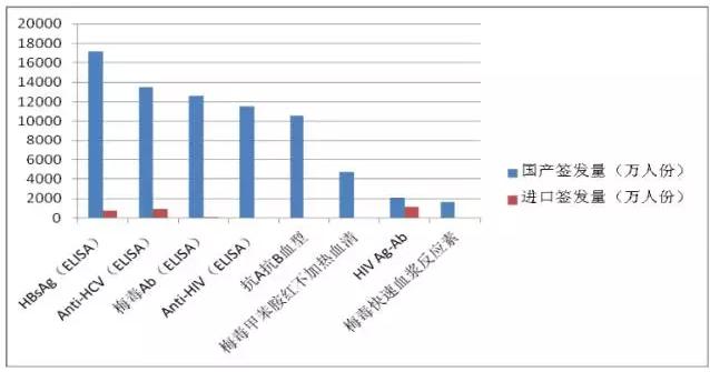 2016 年国产和进口血源筛查用体外诊断试剂签发量