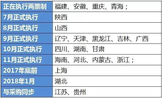 从各省文件发布时间来看,即使江浙沪等一些用药大省也在最后一刻以行动贯彻了中央精神,基本保持了6月30号前出方案、年内正式实施的统一节奏。除宁夏外,31个省(自治区、直辖市)中,还有北京、山东、河南、江西、云南、广东、新疆、西藏8地未正式下发两票制文件,这8个地区不是医改试点地区,按照国家规定,年内需要出方案,2018年底全面执行。