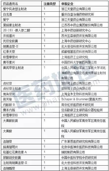 CDE受理的中成药(一类新药)一览