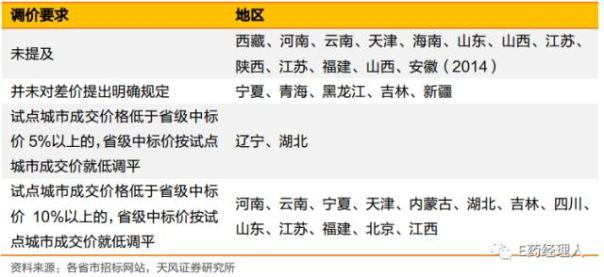 一方面体现在药品招标环节中的左右联动趋势之中。在7号文和70号文的要求下,各省市在新的招标方案中对于限价提出了更高的要求。绝大多数地区均明确提出,药品中标价格需与其他省市进行左右联动。例如西藏、青海、辽宁等9个省,目前要求以本省之前中标价和附近的5个省市的中标价作为参考,陕西省则是以附近10个省市的中标价作为参考,而包括河南、北京、山东等在内的13个省市则明确规定,要以全国范围内的药品中标价格和价格最低的几个省市的招标价格进行对比。一个全国性的价格降价、联动网络俨然已经形成。