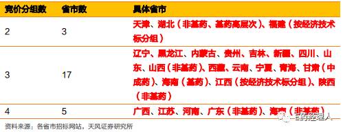 从目前各地施行的分组情况来看,除了福建、江西等省份按照技术标分值分组外,其他大部分省份均以质量指标划分竞价分组。在目前新一轮招标方案中已明确提到分组的24个省市中,绝大多数分为三层,广西、江苏等省则细化为4个分组,天津、湖北等省市则更加严厉,只有两个竞价分组。
