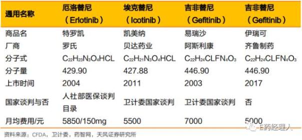 对于竞争格局日益不利的重磅品种而言,国家谈判可能是一个无奈的选择。以非小细胞肺癌靶向药物吉非替尼、埃克替尼、厄洛替尼为例,吉非替尼原研专利到期后,后续将迎来仿制高潮,其中齐鲁制药的吉非替尼首仿已于2017年1月份获批上市,吉非替尼、埃克替尼也均于2016年接受了国家卫计委的药价谈判,厄洛替尼去年谈判失败,但也迫于竞争形势随后不久主动宣布降价30%,而此次则参与国家医保谈判进一步降价到58%。