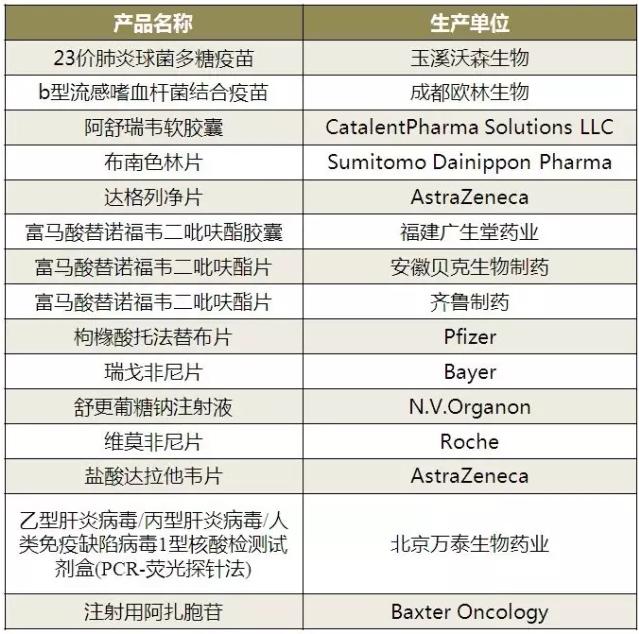 表1 临床自查名单在2017年首次获批上市产品-企业清单