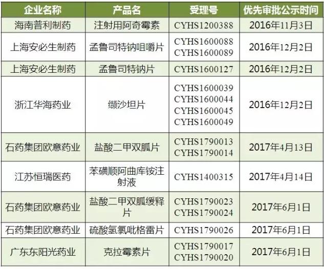 如表2所示,海南普利制药有限公司注射用阿奇霉素2012年报产,2015年10月FDA暂时获批生产,2016年11月在国内获优先审评,至今未获批产,也未获通过一致性评价的标识。