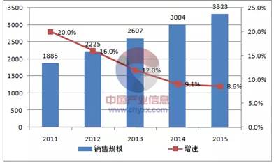 国内2011-2015医药零售市场规模(亿元)