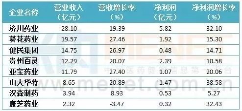 表1:8家A股上市儿童药生产企业2017年上半年业绩情况