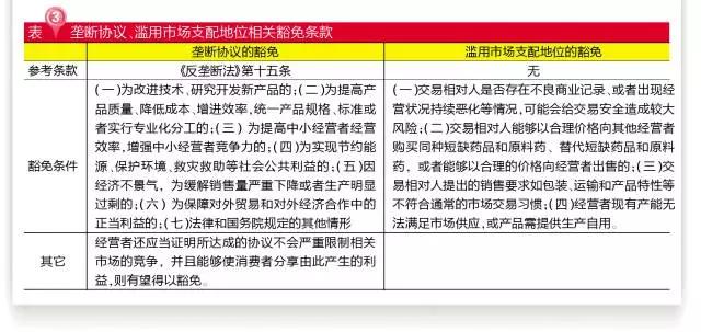 特别值得关注的是,垄断协议、滥用市场支配地位都有相关的豁免。