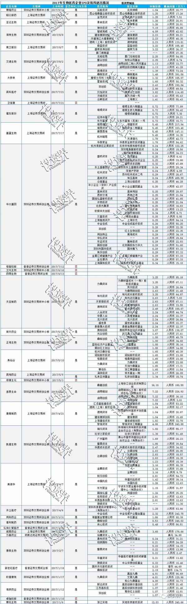 投资界整理了2017年来生物医药领域企的IPO业以及其背后投资机构的退出情况,见下表。