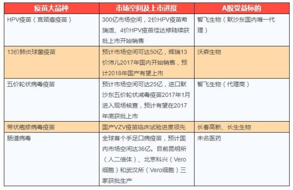 有业界人士表示:“疫苗大品种是“放量最快”的创新药,相比一般创新药物来说,疫苗品种受招标降价、医保报销影响小;终端为县级CDC,进入终端流程简单,容易快速实现销售;并且随着人们生活水平的提高,居民疫苗接种意识渐强,疫苗更受益于消费升级。可以说疫苗大品种是升级版的创新药物,上市后空间广大放量迅速,将为相关企业带来巨大的业绩增量,行业拐点已现”。