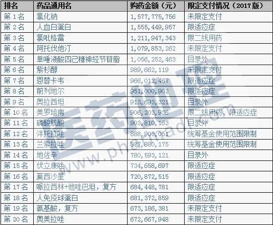 限定支付包括限统筹基金使用范围、限特定使用人群、限二线用药、限医疗机构等情况,通过“有条件”地医保支付,防止基金出险,同时,由于报销的“约束”,一些大品种,特别是辅助性药品的市场销量得到了更合理的控制,最终使治疗性药物的市场份额扩大,合理用药率有效提升。医药地理整理发现,2017年上半年重点城市医院销售额TOP20品种中,限定支付的比例超过半数,其中大部分为重点监控品种,如氯吡格雷、美罗培南,涉及的上市公司包括深圳信立泰、乐普药业、海正药业等。