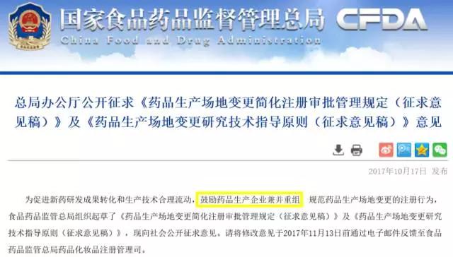 医药网10月19日讯 药企之间的兼并重组、品种并购的经常发生的事情,发生兼并重组经常就会发生药品批文转移乃至生产场地变更的情形,CFDA发文就药品生产场地变更简化注册审批管理,有利于加快药企兼并及品种转移。