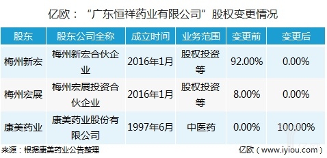 亿欧消息,10月28日,医药上市公司“康美药业”发布公告称,其以现金方式,收购梅州宏展投资合伙企业(有限合伙)和梅州新宏合伙企业(有限合伙)持有的广东恒祥药业有限公司100%的股权,收购价为7000万元,同时根据业绩承诺调整收购总价,收购总价最高不超过1.40亿元。收购完成后,康美药业将持有广东恒祥药业有限公司100%的股权。