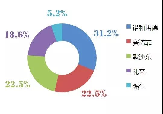 2016年,糖尿病药物样本医院用药金额排名前5的企业分别是诺和诺德、赛诺菲、拜耳、施贵宝、礼来。其中诺和诺德产品的用药金额占比1/4。目前,国内糖尿病市场主要由国外企业垄断,国内企业竞争力相对薄弱。值得一提的是,国产降糖药也逐渐在该用药领域中崭露头角,如杭州中美华东制药的阿卡波糖片、甘李药业的重组甘精胰岛素注射液、通化东宝药业的重组人胰岛素注射液。其中,前两者已在市场占有一席之地。
