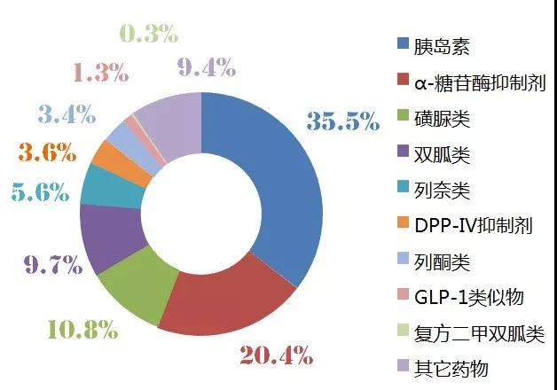 从药物类别看,传统的胰岛素类和α-糖苷酶抑制剂在国内糖尿病市场占据主导地位。值得关注的是,GLP-1受体激动剂、DPP-4抑制剂两类新靶点药物市场占比在逐年提升。