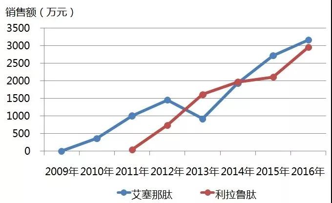 图6 2009-2016年GLP-1受体激动剂样本医院市场销售趋势
