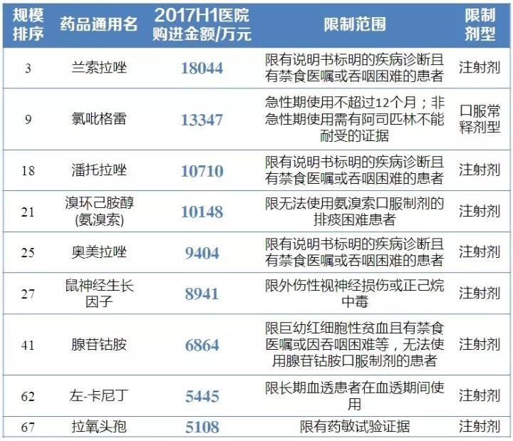 此外,部分用量大、存在滥用可能的化药品种增加了限制范围,如拉唑类注射剂,医保执行后将影响该类品种的增长。