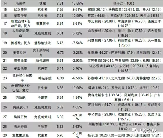 一般来说同一通用名品种有多家生产企业,由于不同企业在产品质量、营销渠道和品牌知名度等方面的差异,导致同样品种销售情况不同。因此,我们统计了医药上市公司的重点品种PDB销售变化情况。