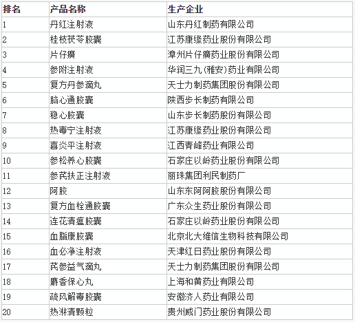 附:2017版中药大品种(全品类)TOP20