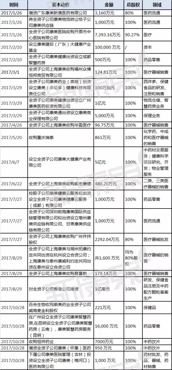 2017年的康美药业动作频频,截至11月21日,就有24项资本动作,其中与医药流通相关的资本动作占极大比例。说明,这位中药材界的龙头老大非常看好医药流通领域。两票制下,药企自己布局医药流通领域已成主流。