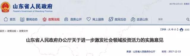 近日,山东省人民政府办公厅公布《关于进一步激发社会领域投资活力的实施意见》,明确提出全面取消基本医疗保险定点医疗机构资格审查和基本医疗保险定点零售药店资格审查,完善基本医疗保险定点医药机构协议管理。