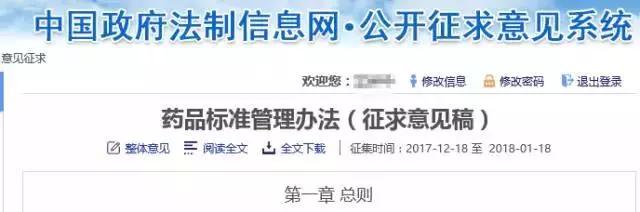 昨日(12月18日),国家食药监总局发布了《药品标准管理办法》(征求意见稿),公开征求意见。在2018年1月18日前,社会各界可提出意见。