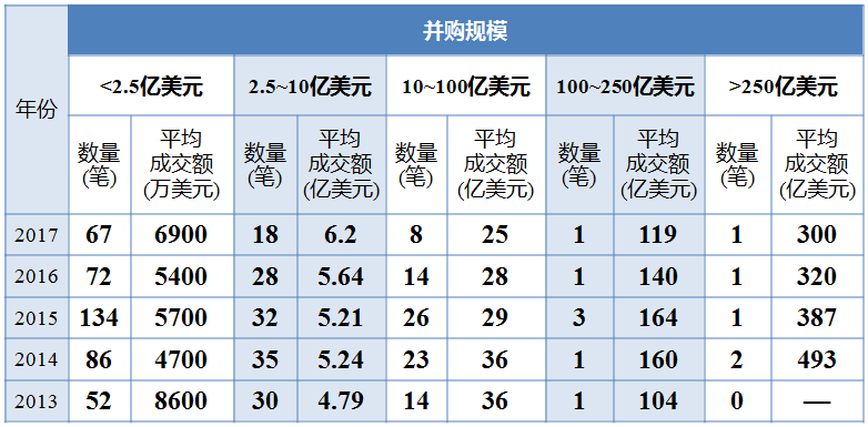表3 近五年不同规模并购的分布情况