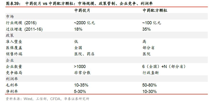 预计关于中药配方颗粒的新政于2018 年推出,解除生产限制但维持使用限制(不允许基层使用)。