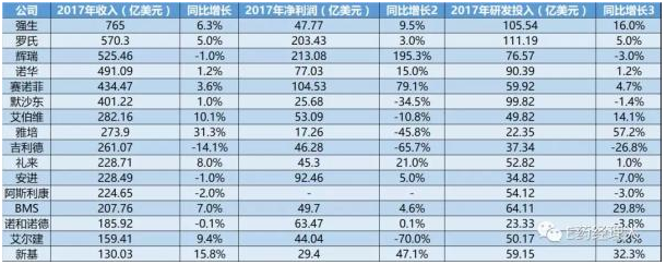 罗氏和辉瑞紧随其后,年收入均突破500亿美元,其中辉瑞净利润实现近200%增长,达到213.08亿美元。对此,辉瑞在年报中表示是由于合并了Medivation以及Anacor等收购标的的财务报表,由此实现净利润的大幅增长。