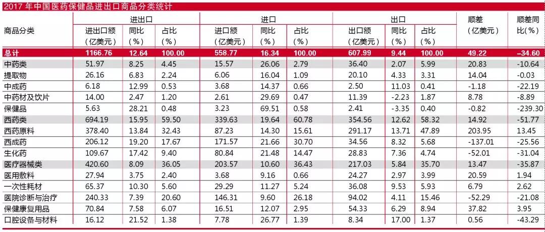 2017年,国内需求依旧保持较高水平,进口保持较快增长。我国医药类产品全年进口额558.77亿美元,同比增长16.34%。