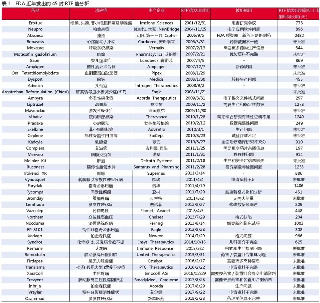 FDA近年发出的45封RTF信分析